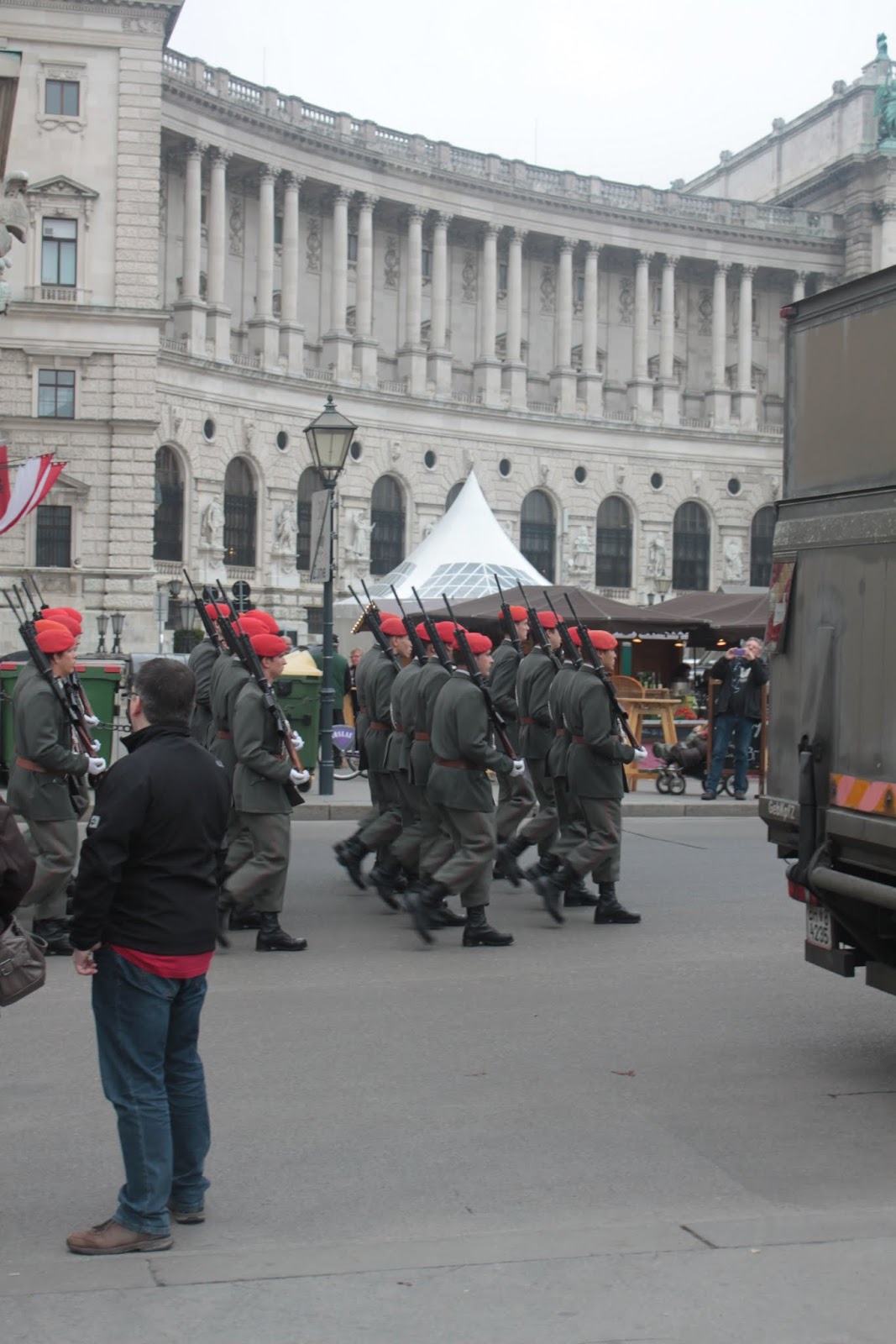 Since we were in Vienna before Austrian National day, they were also setting up for a large army display in the Heldenplatz. Most of the displays were not finished, but the soldiers were drilling, and some of the heavier equipment was set up already.